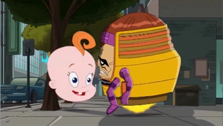 Giant Floating Baby Head cameo in The Phineas and Ferb Effect.