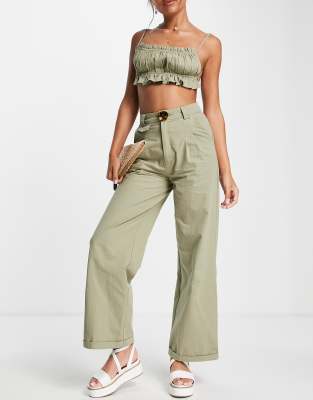 Green strappy crop top. Length approx 28cm11 Based on a sample size S Model wears size S. Featuring a cropped fit with v neckline and thin straps in a tailoring olive. Cider Green Strappy Top Size XL - 15 New With Tags - From Emily.