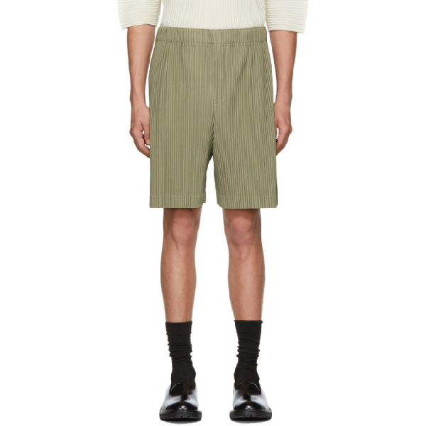 Homme Plissé Issey Miyake. Short sleeve garment-pleated shirt in khaki. KERSEY PLEATS are light yet warm pieces with a rough stripe finish reminiscent of.